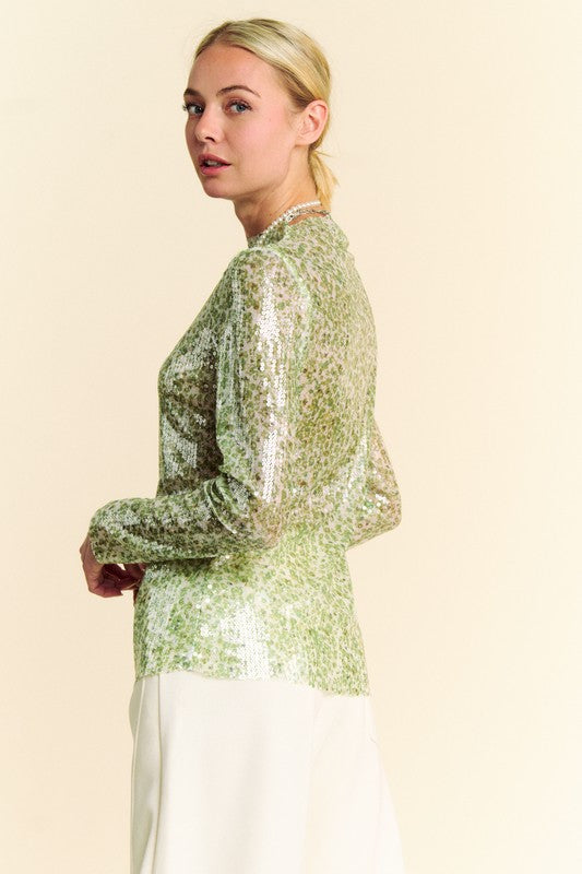 The Sequin Mock Neck Long Sleeve Mesh Top is a glamorous and chic addition to any wardrobe. This top features dazzling sequin embellishments that add a touch of sparkle and sophistication. The mock neck design adds a modern and trendy twist to the classic long sleeve silhouette. Made from mesh fabric, this top is lightweight and breathable, perfect for both day and evening wear. Stand out from the crowd and elevate your look with this stunning sequin mesh top that is sure to turn heads wherever you go.